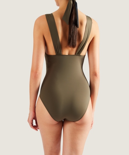 崇高之美-無鋼圈泳衣(棕梠綠)