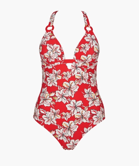 夏日香氣-無鋼圈連身泳衣(橙紅)